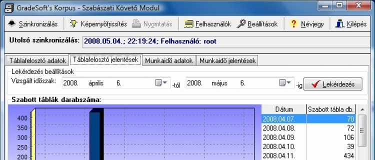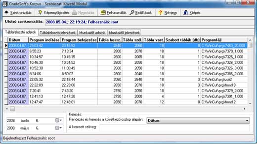 A program modul segítségével az irodai munkaállomáson követheti nyomon a táblafelosztó gép által leszabott táblák mennyiségét és a szabászati dolgozók teljesítményét. A modul folyamatosan nyomon követi a KORPUS programból, a táblafelosztó gépre elmentett programállományok végrehajtásának állapotát és a táblafelosztó gép naplózott adatai alapján, automatikusan meghatározza az adott szabászati térkép vágásának kezdési és befejezési időpontját. Ezek alapján bármikor betekintést nyerhet a táblafelosztó gép teljesítményébe.