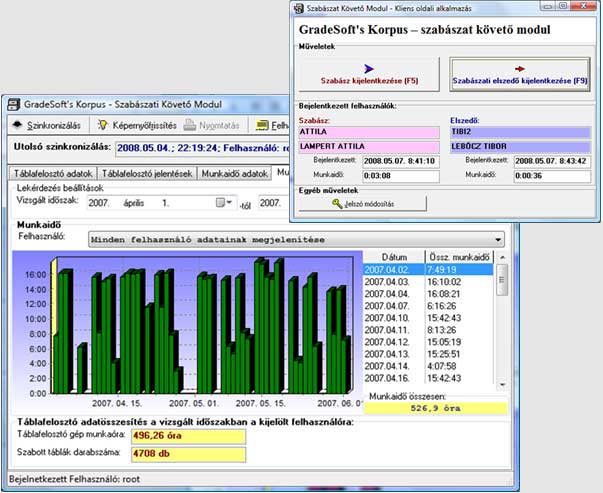 A program modul lehetőséget ad továbbá, hogy kövesse a szabászati dolgozók teljesítményét. Szabász és elszedő munkakörökbe sorolva hozhat létre egyedi felhasználói névvel és jelszóval ellátott felhasználókat, akik teljesítménye és munkaideje a táblafelosztó gépre telepített bejelentkező modul segítségével folyamatos naplózásra, tárolásra kerül.